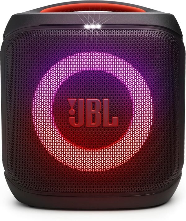 It produces 100 watts of JBL Pro Sound with deep bass, bright mids, and crisp highs that fill smaller rooms and outdoor hangouts with ease.